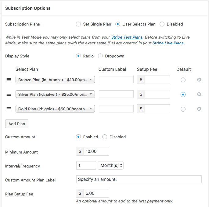 Not only will the massive shortcodes be gone, but it’s a much easier and less error-prone configuration experience. Options for subscriptions are more intuitive and we retrieve plans you’ve already setup in your Stripe dashboard so you can easily select them.